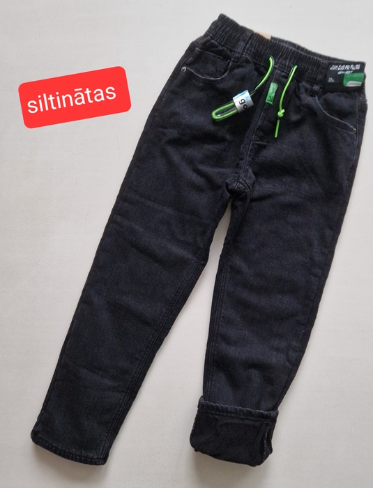 Siltas, elastīgas, ideālas kvalitātes džinsa bikses : viduklī gumija + savelkams, sasienams, silts, mīksts oderes siltinājums, ir kabatas.